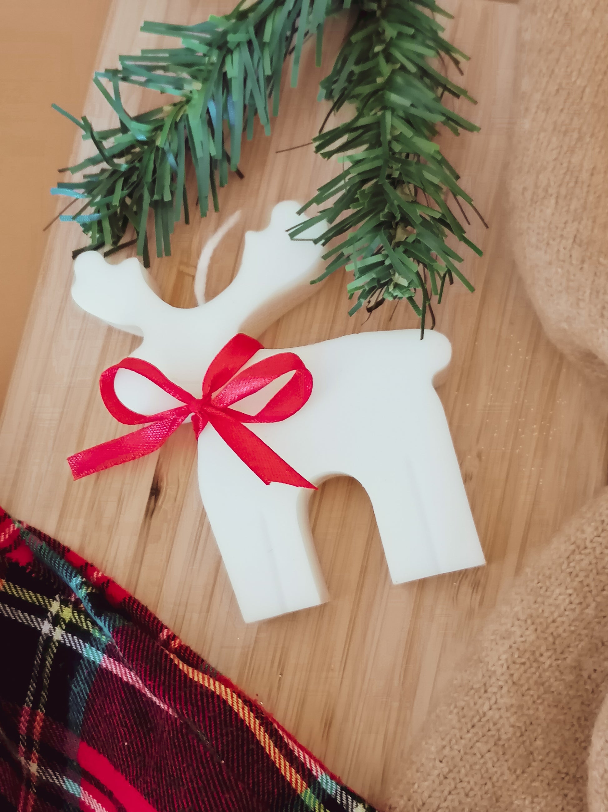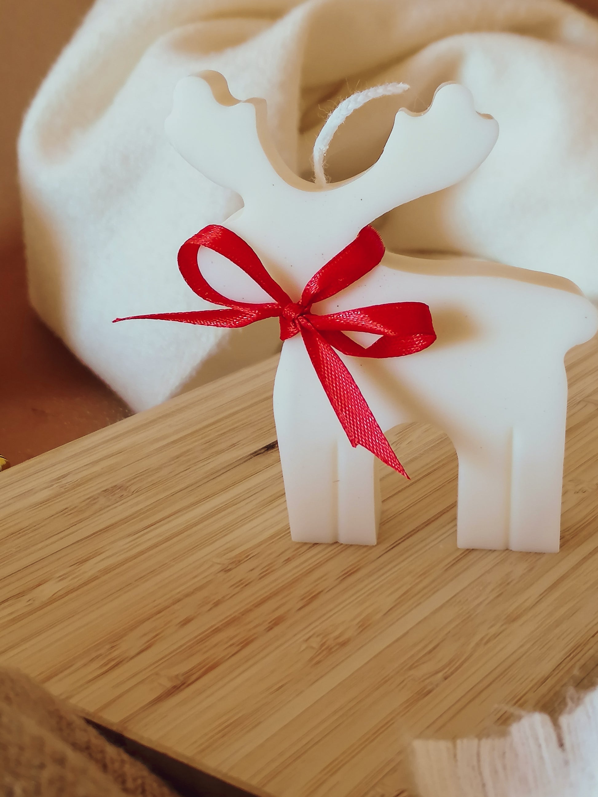 A nossa rena decorada com fita de cetim é perfeita para iluminar as tuas celebrações em família. Dará sem dúvida um toque encantador às tuas decorações de Natal.